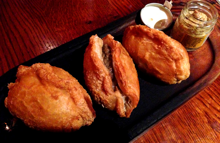 で、チキン以外のお肉が食べたくてRumbって書いてたのを頼んだら見た目ギョウザみたいなパイが来ました。