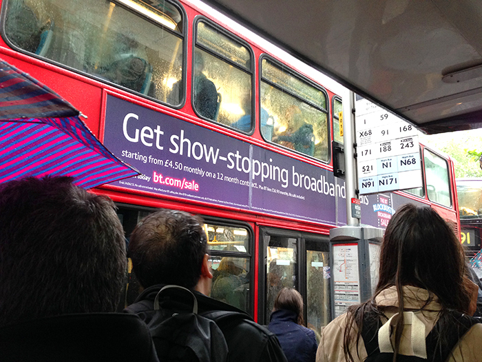 バスを使うのは観光以来。観光の後半は結構お世話になりました。ロンドンのバスは路線いっぱいで24時間のもあり便利です♪